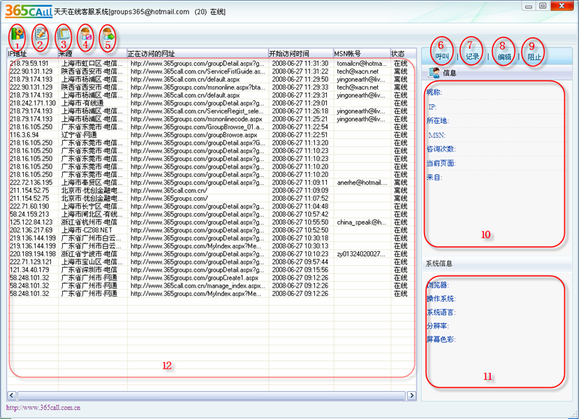 12- 訪客列表欄: 網(wǎng)站的訪問者詳細列表。 |